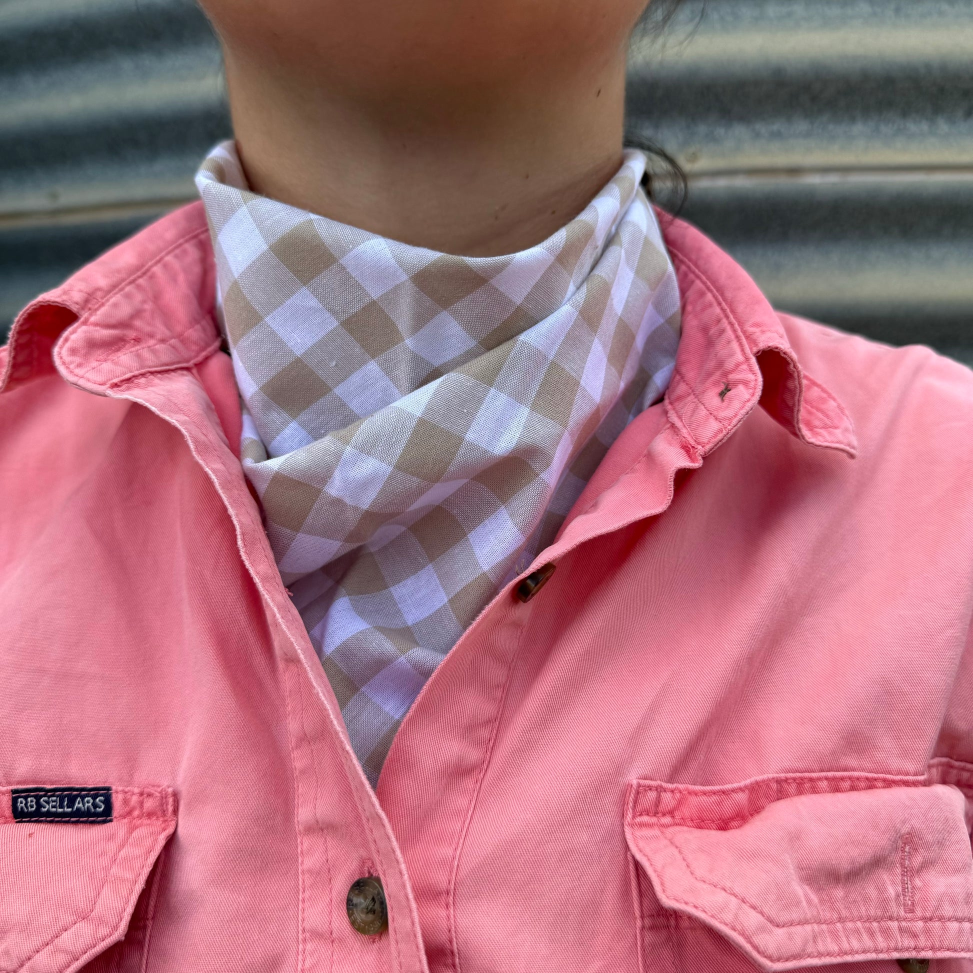 Beige & White Gingham - Adult Neck Scarf