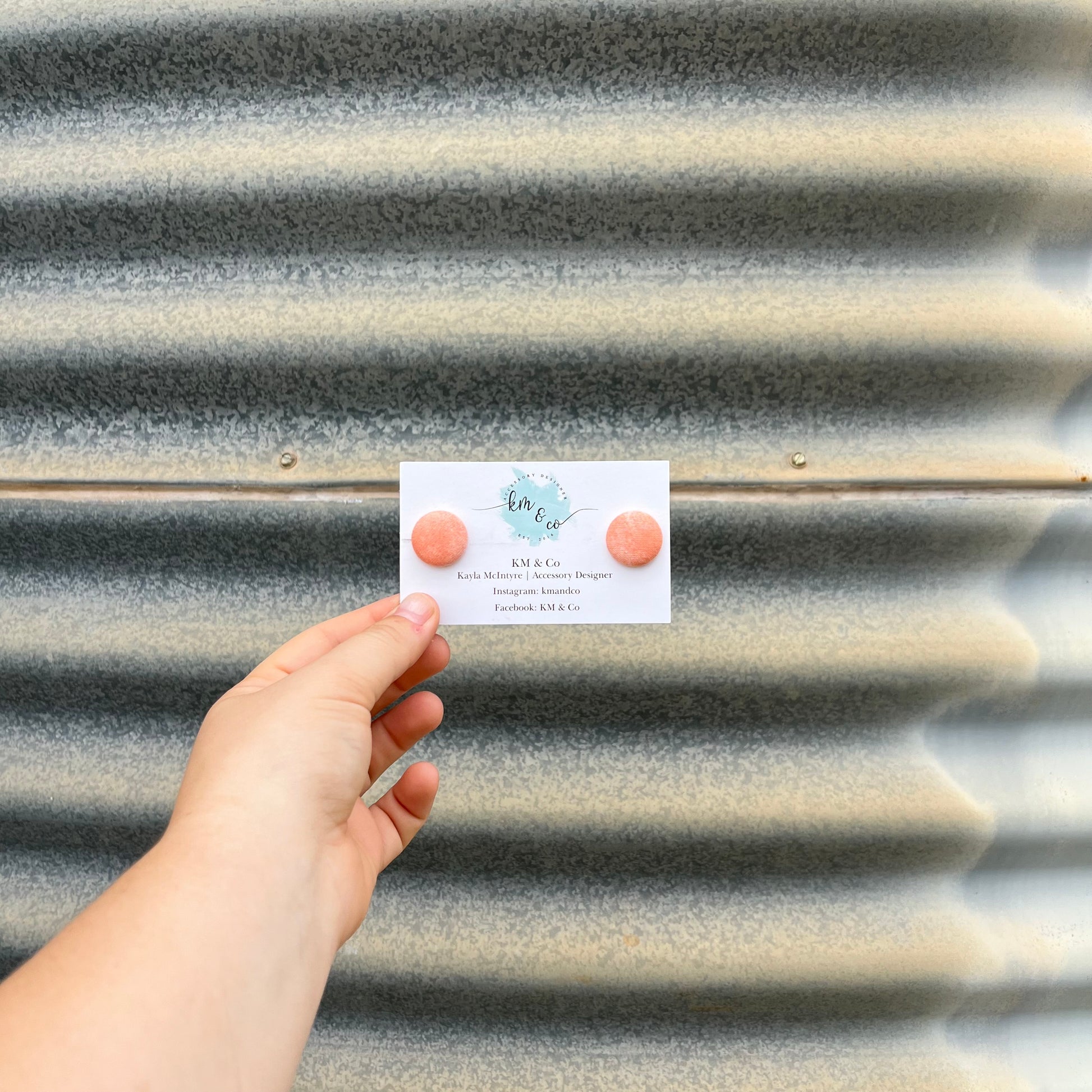 Our lightweight button earrings are the perfect everyday accessory — available in 15mm, 19mm & 23mm sizes to suit your style. Made with surgical steel posts for sensitive ears, they come in a wide range of colours and patterns, designed to complement any outfit.
