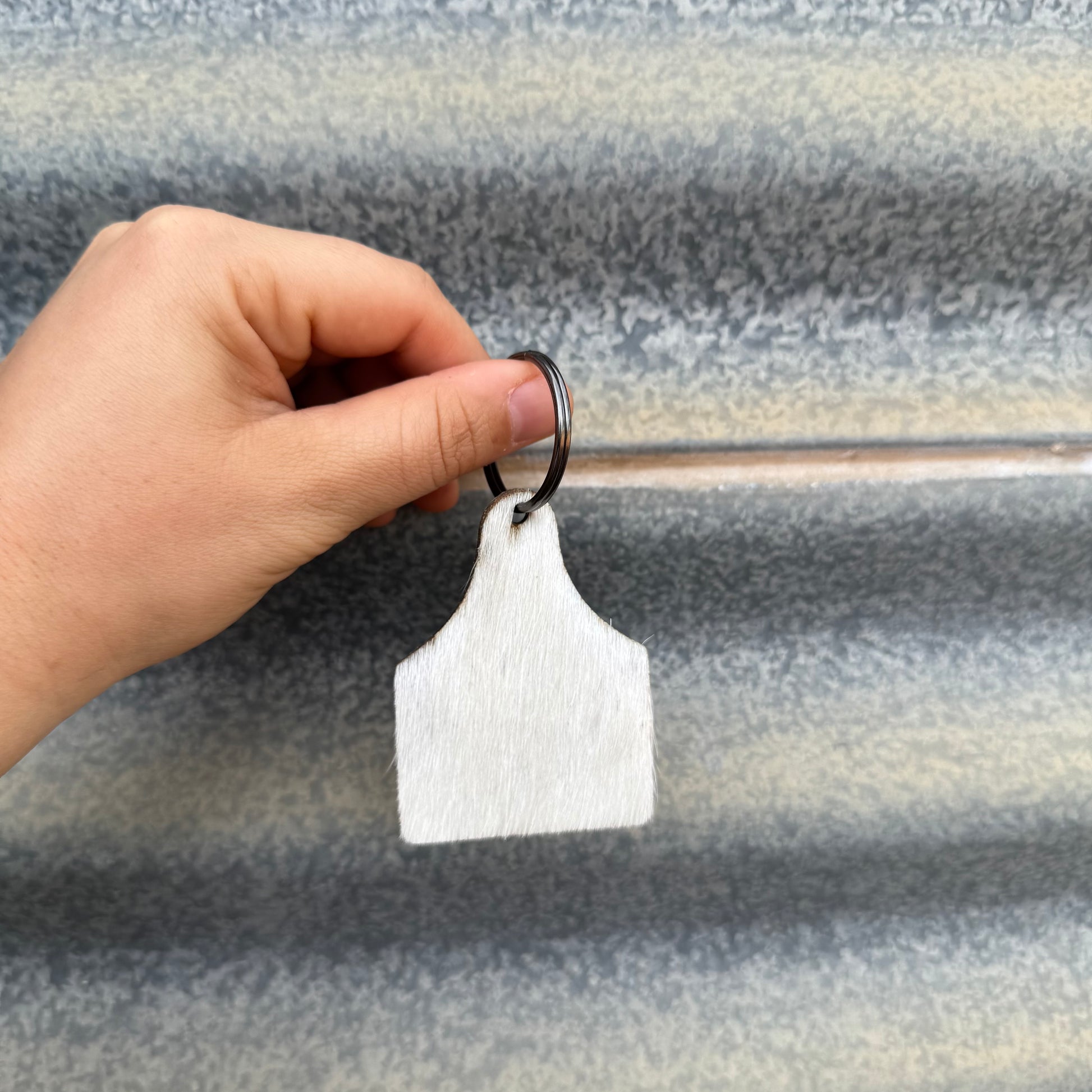 Cowhide Cattle Tag Keyring #1 - Gunmetal Grey