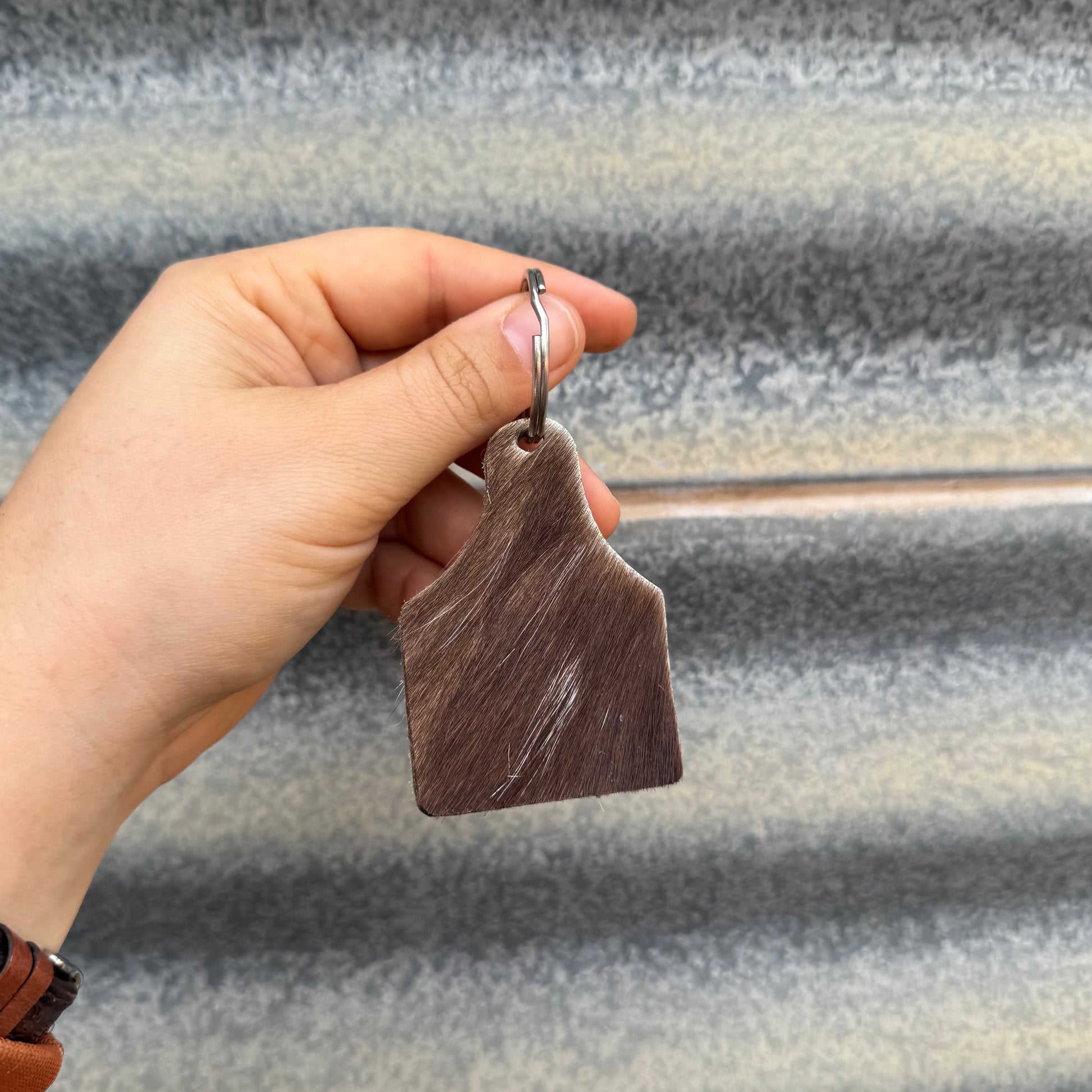 Cowhide Cattle Tag Keyring #14 - Silver