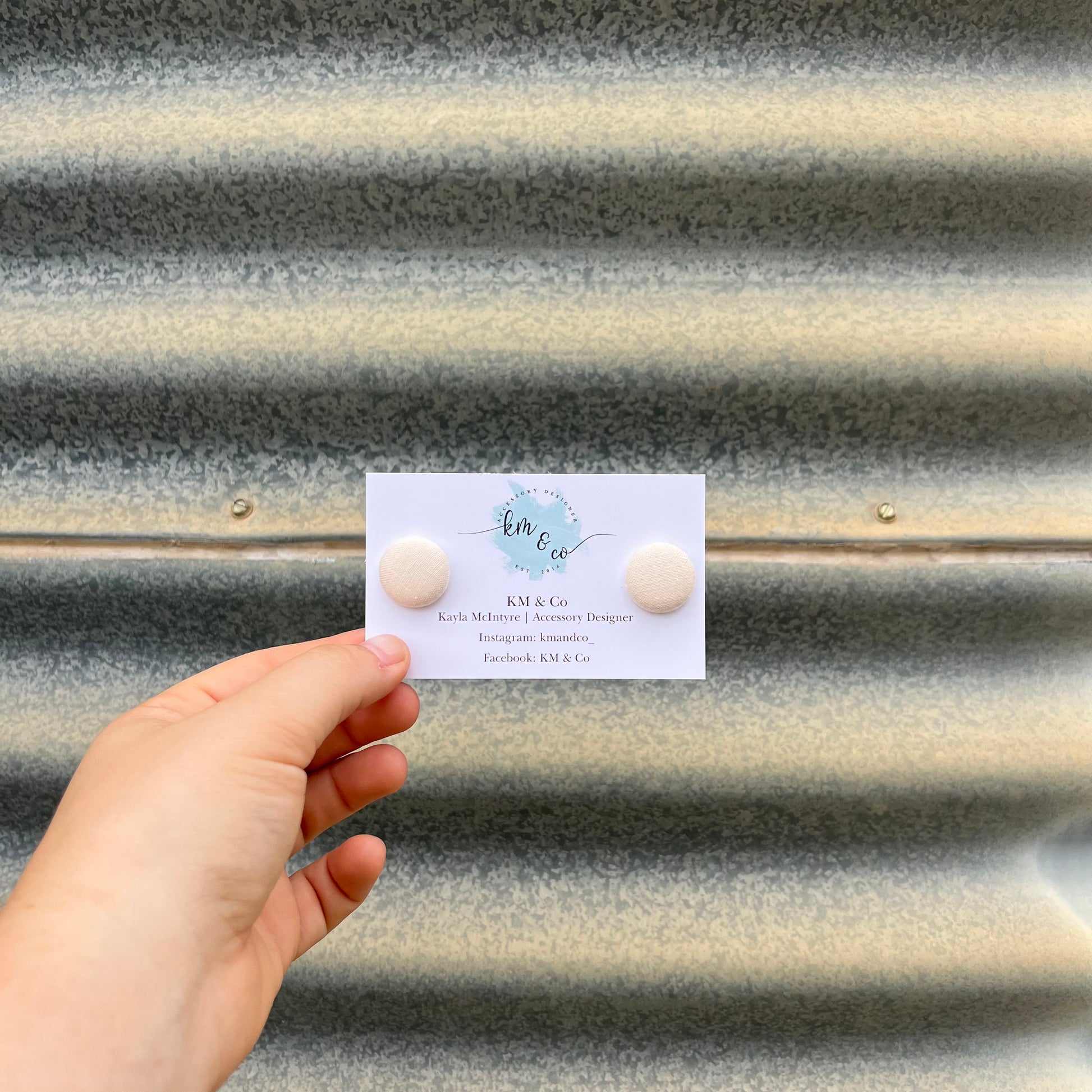 Our lightweight button earrings are the perfect everyday accessory — available in 15mm, 19mm & 23mm sizes to suit your style. Made with surgical steel posts for sensitive ears, they come in a wide range of colours and patterns, designed to complement any outfit.