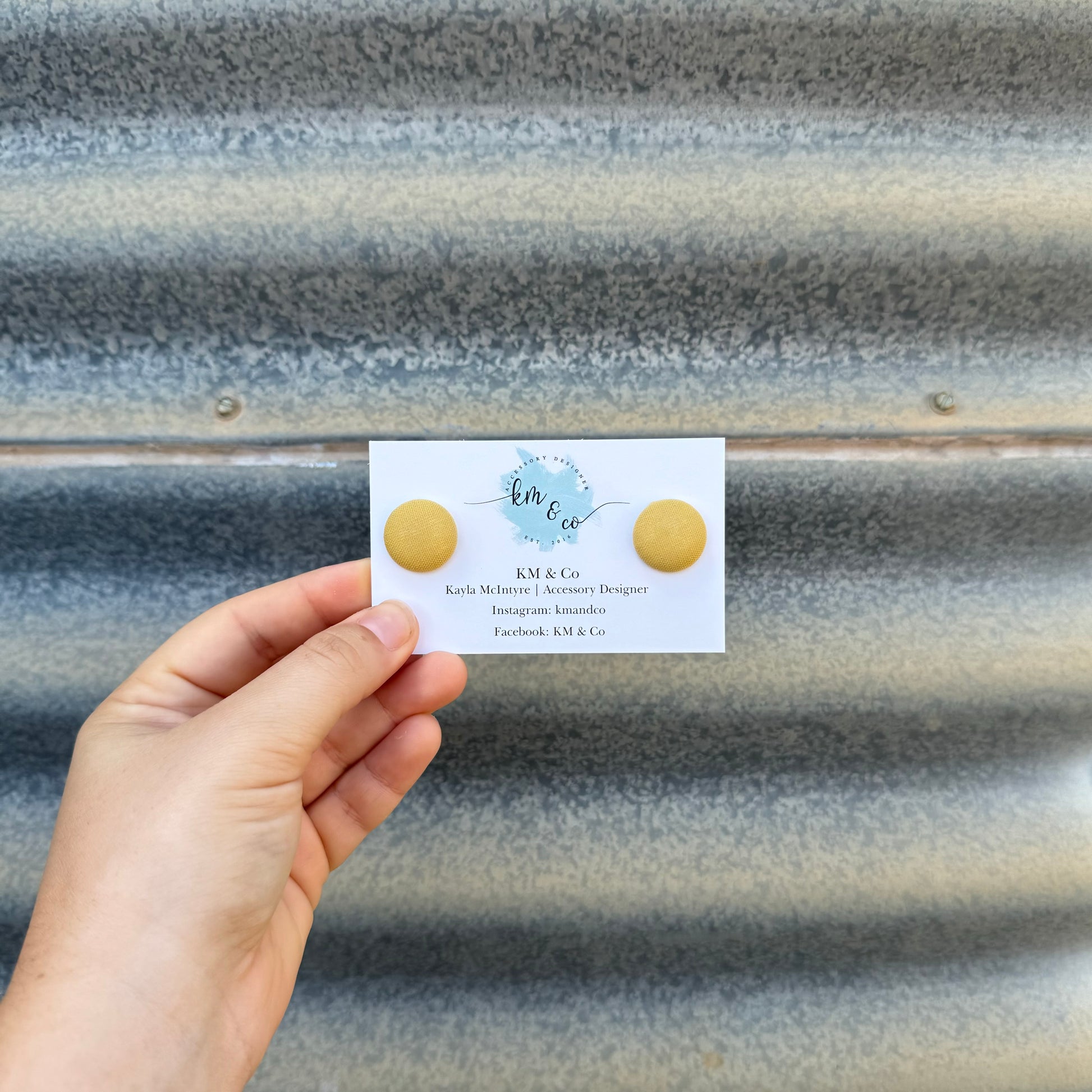 Our lightweight button earrings are the perfect everyday accessory — available in 15mm, 19mm & 23mm sizes to suit your style. Made with surgical steel posts for sensitive ears, they come in a wide range of colours and patterns, designed to complement any outfit.