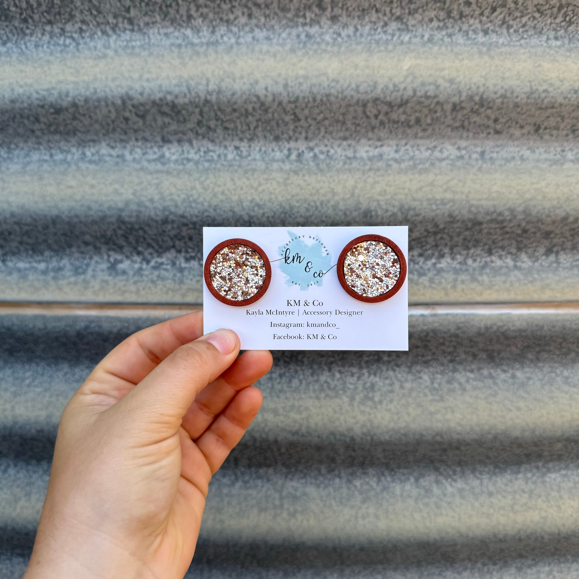 Gold Glitter - Large wooden earrings