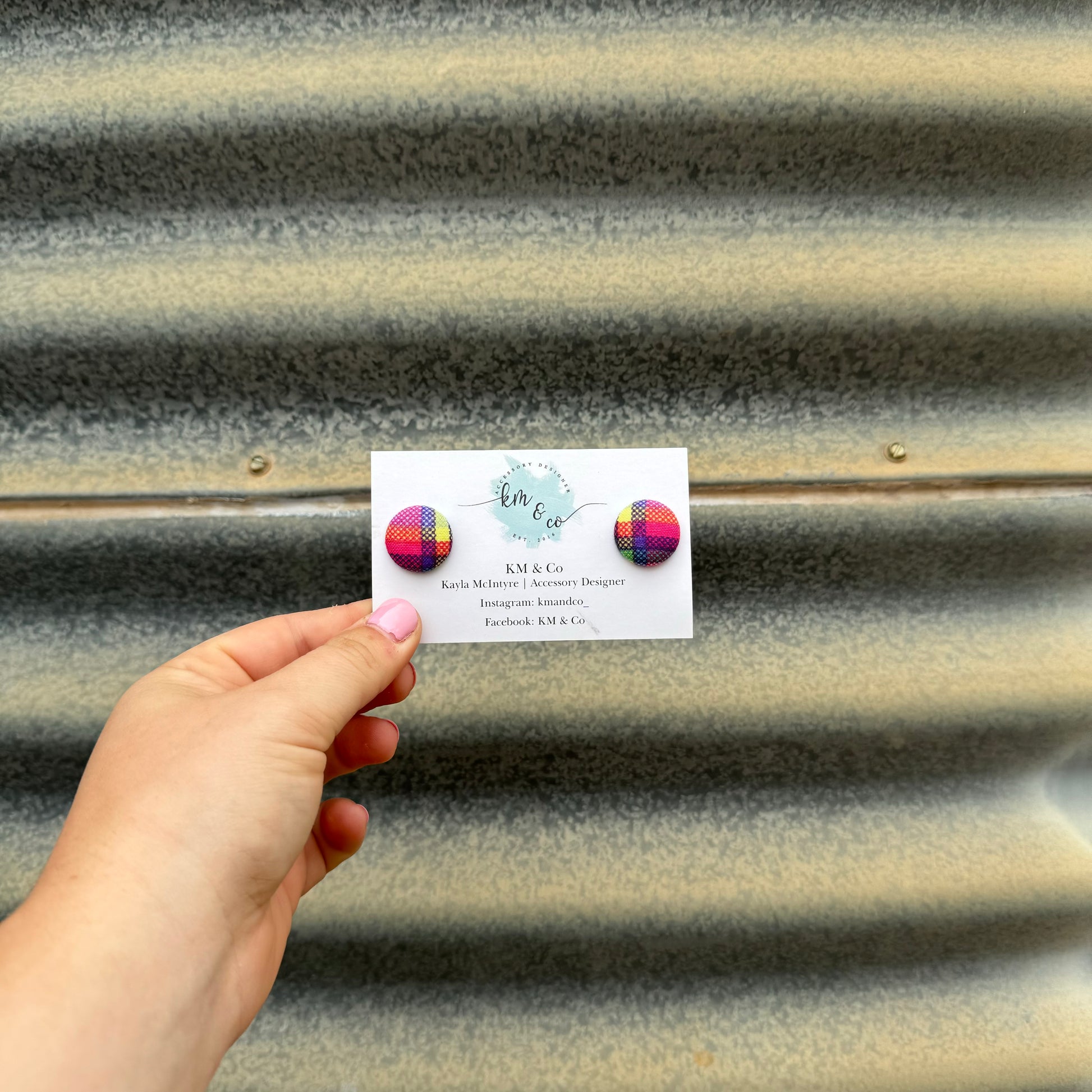 Multicolour Check - Fabric Button Earrings