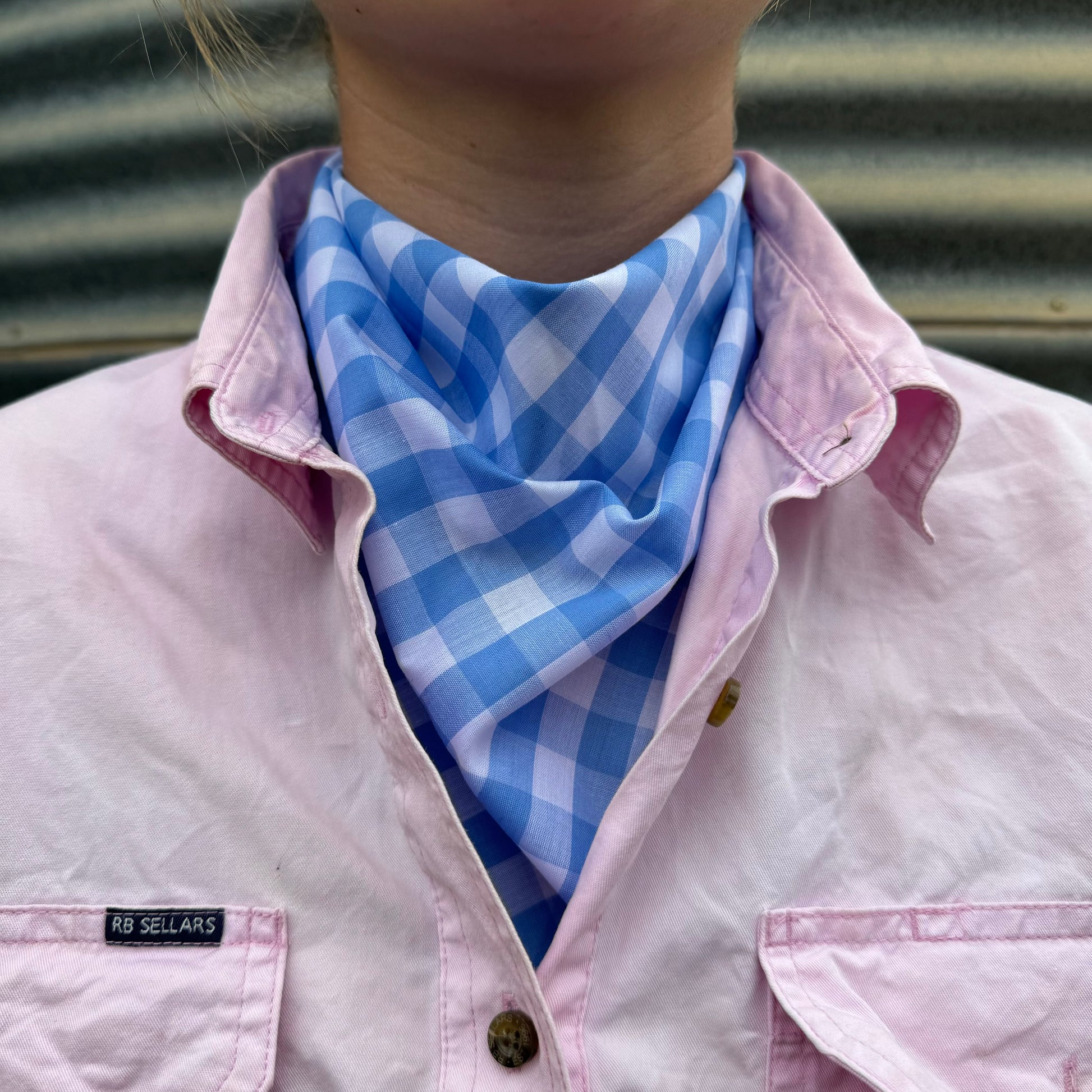 Pale Blue & White Gingham - Adult Neck Scarf
