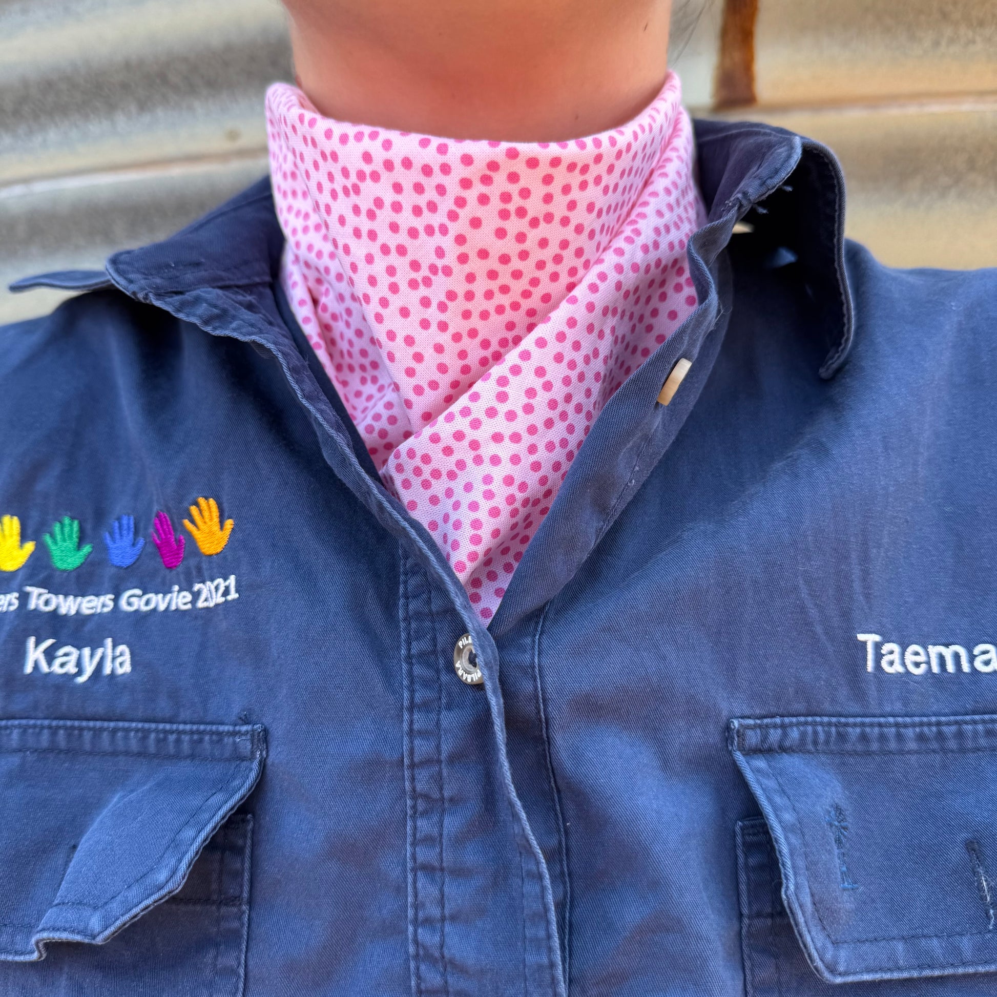Our KM & Co scarves are designed with comfort and practicality in mind, featuring an adjustable tie-up back for the perfect fit and an elastic loop at the base so you can secure it to your shirt and keep it in place from sun-up to sundown. Whether you’re riding, working, or just out and about, this scarf isn’t going anywhere.