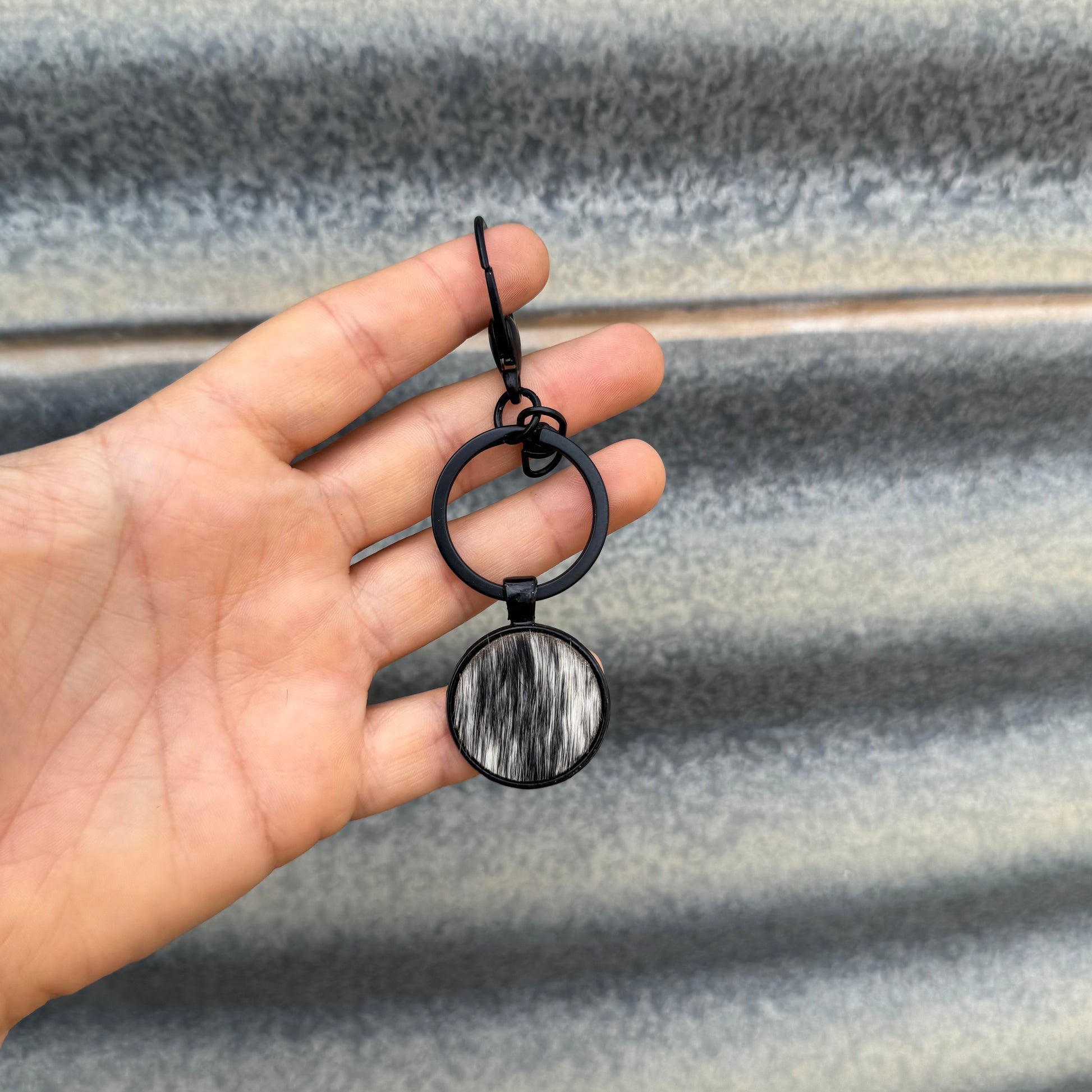 Add a touch of country charm to your everyday essentials with our Round Cowhide Key-rings. Each one features genuine cowhide encased in a sleek metal frame, available in classic silver or matte black finishes. These key-rings are designed with a sturdy clasp for easy attachment to keys, bags, or belt loops – the perfect blend of rustic style and practicality.
