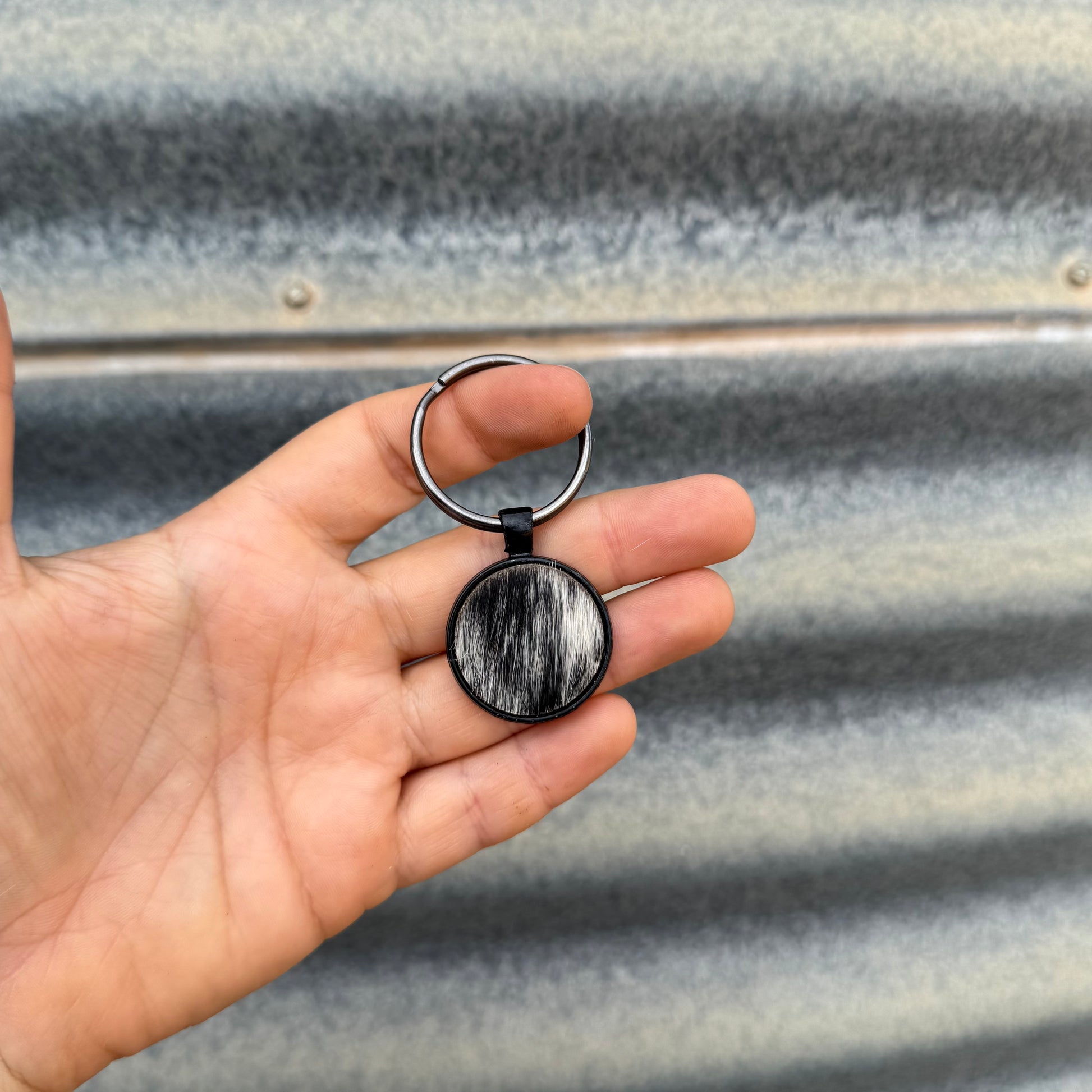 Elevate your everyday carry with a Round Cowhide Keyring — where rustic charm meets timeless style. Each piece is made with genuine cowhide, set into a sturdy metal frame, creating a sleek and durable accessory that stands out from the rest.