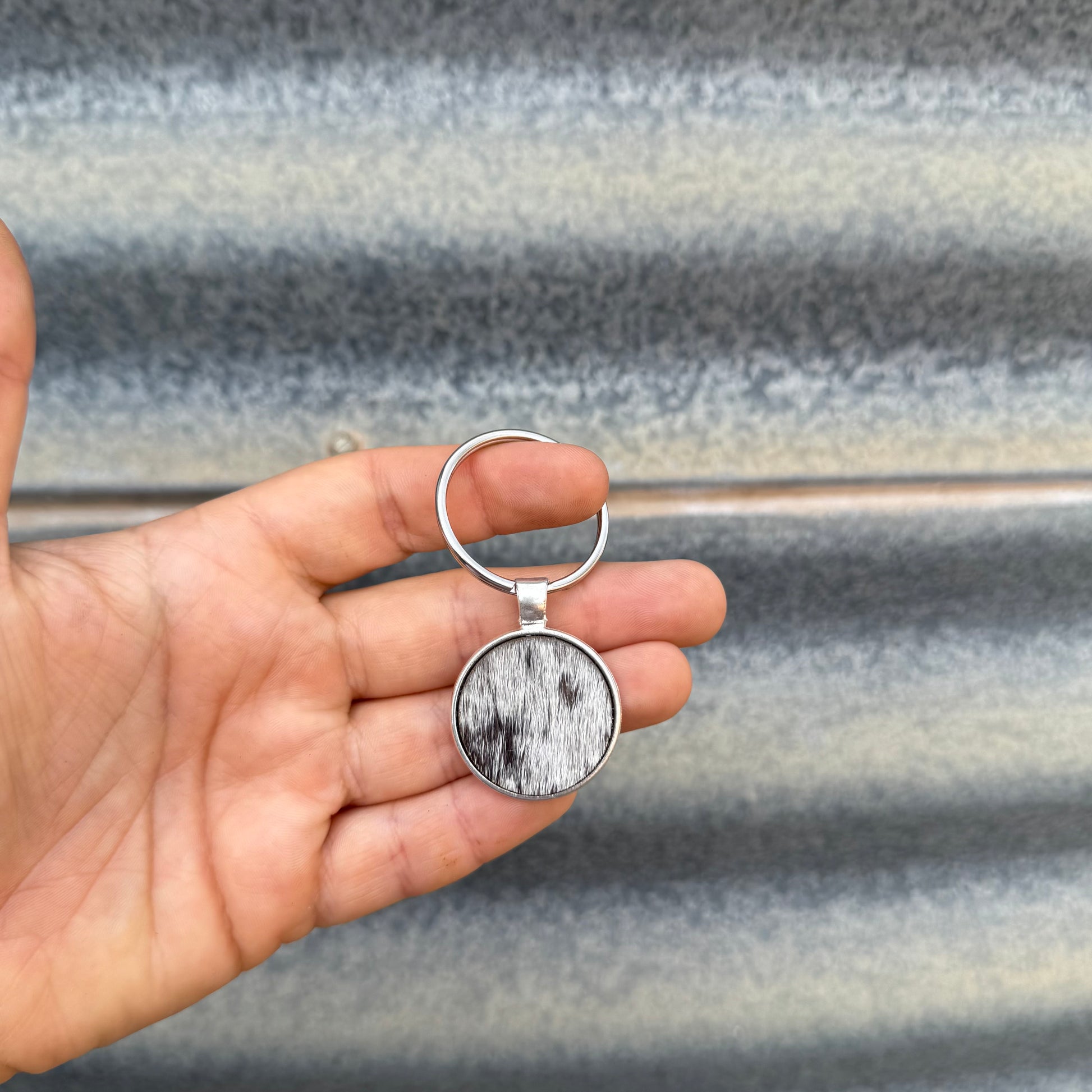 Round Cowhide Keyring #3 - Silver