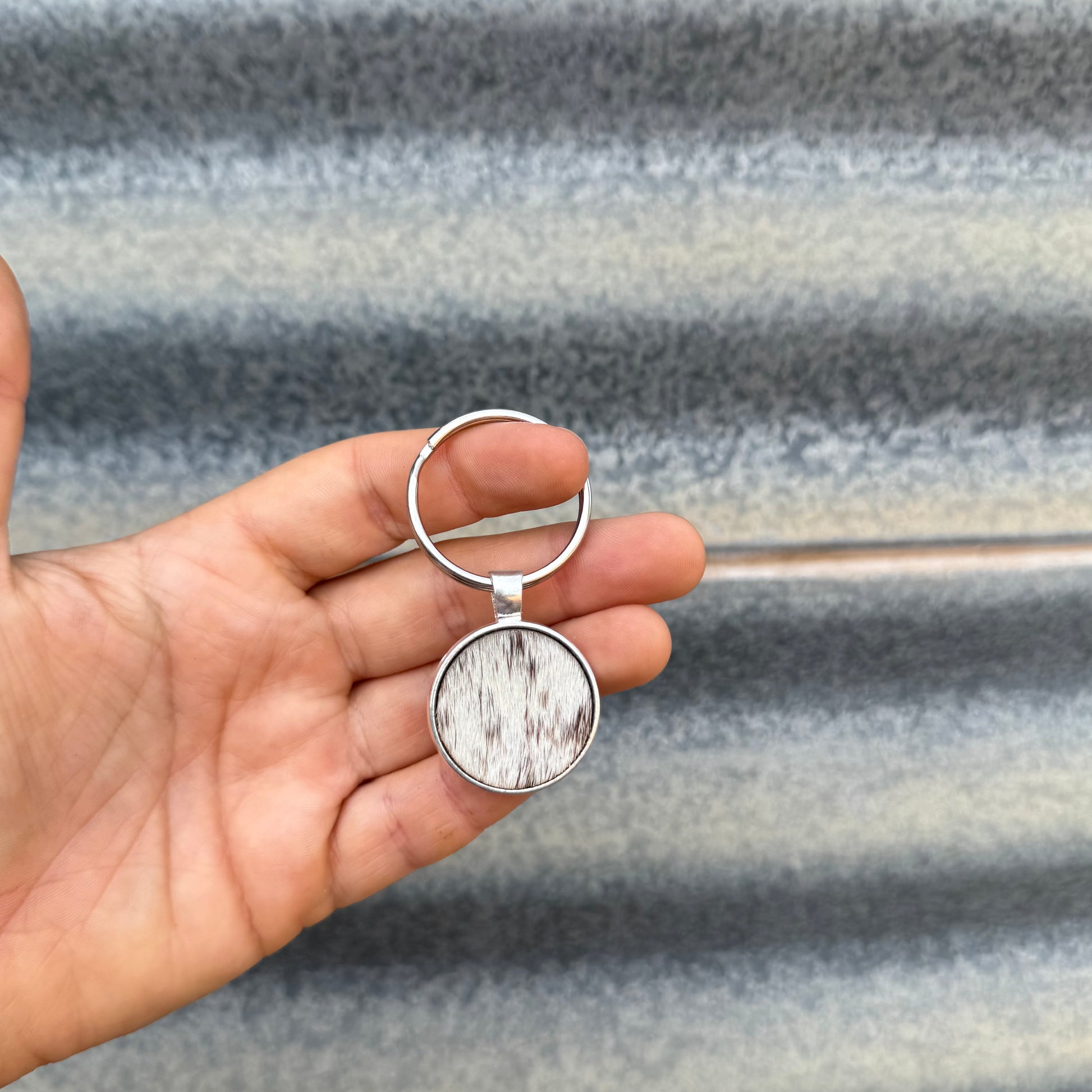 Round Cowhide Keyring #6 - Silver