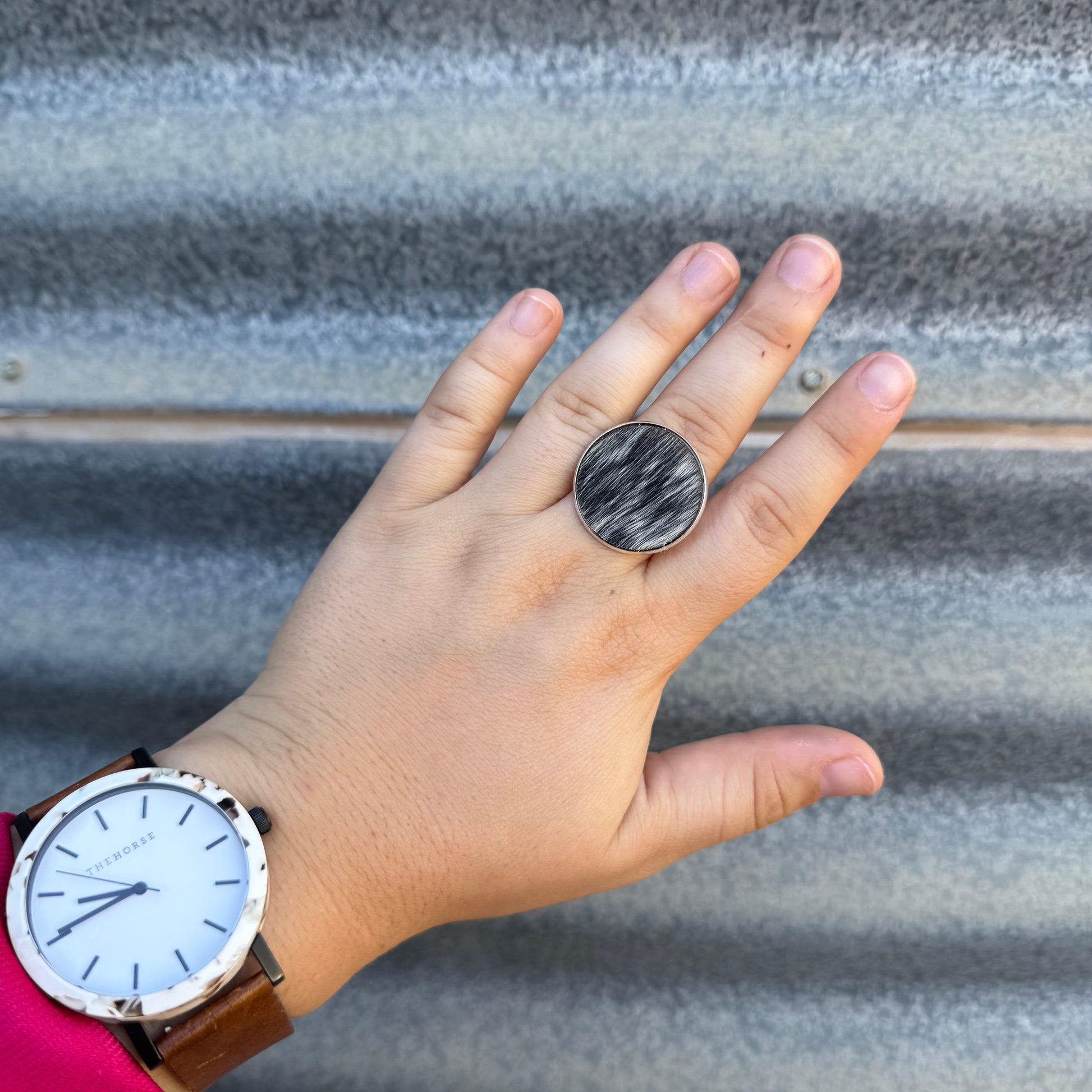 Our beautiful adjustable cowhide rings are the perfect piece of bling for your hand! They are made in a 25mm pendant.