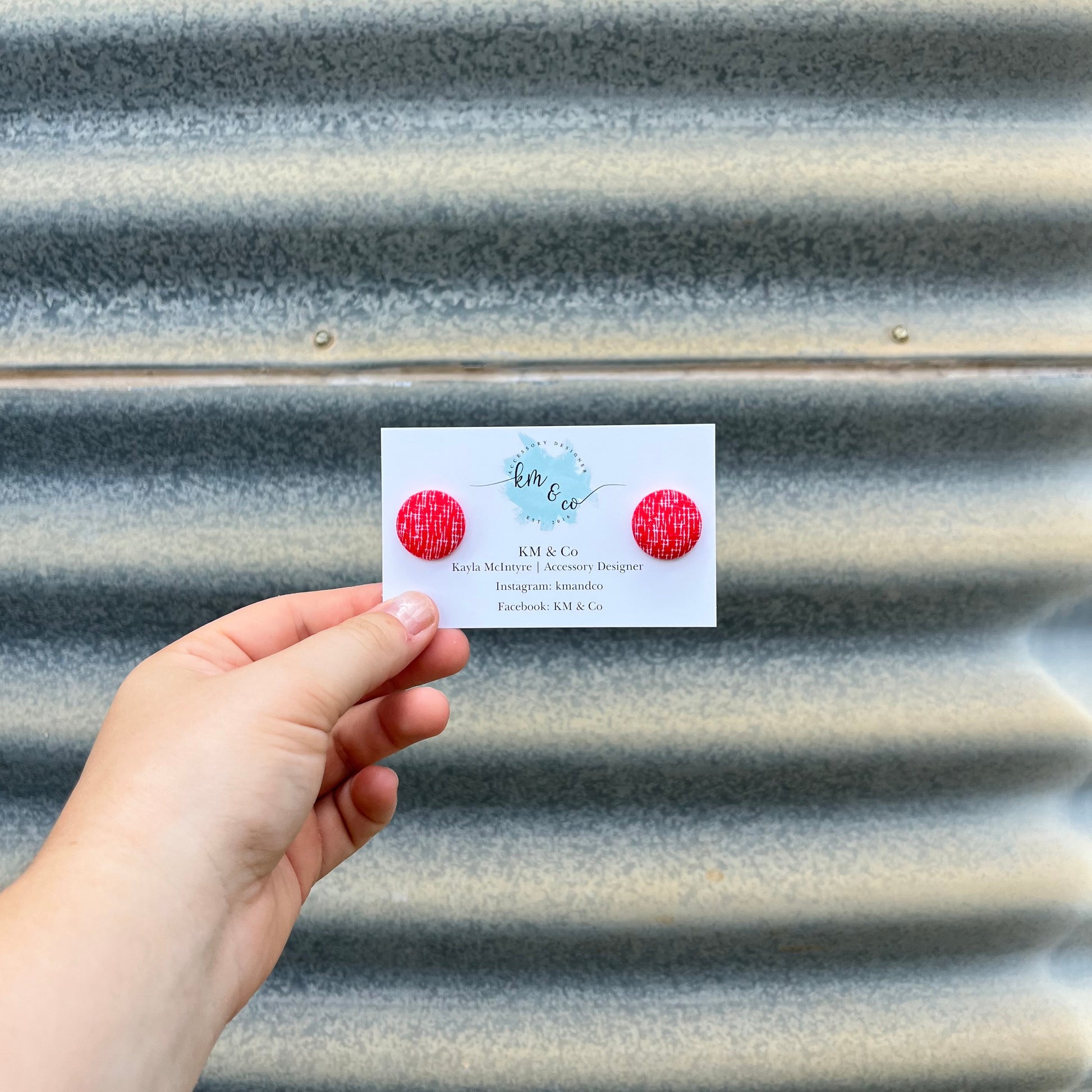 Our lightweight button earrings are the perfect everyday accessory — available in 15mm, 19mm & 23mm sizes to suit your style. Made with surgical steel posts for sensitive ears, they come in a wide range of colours and patterns, designed to complement any outfit.
